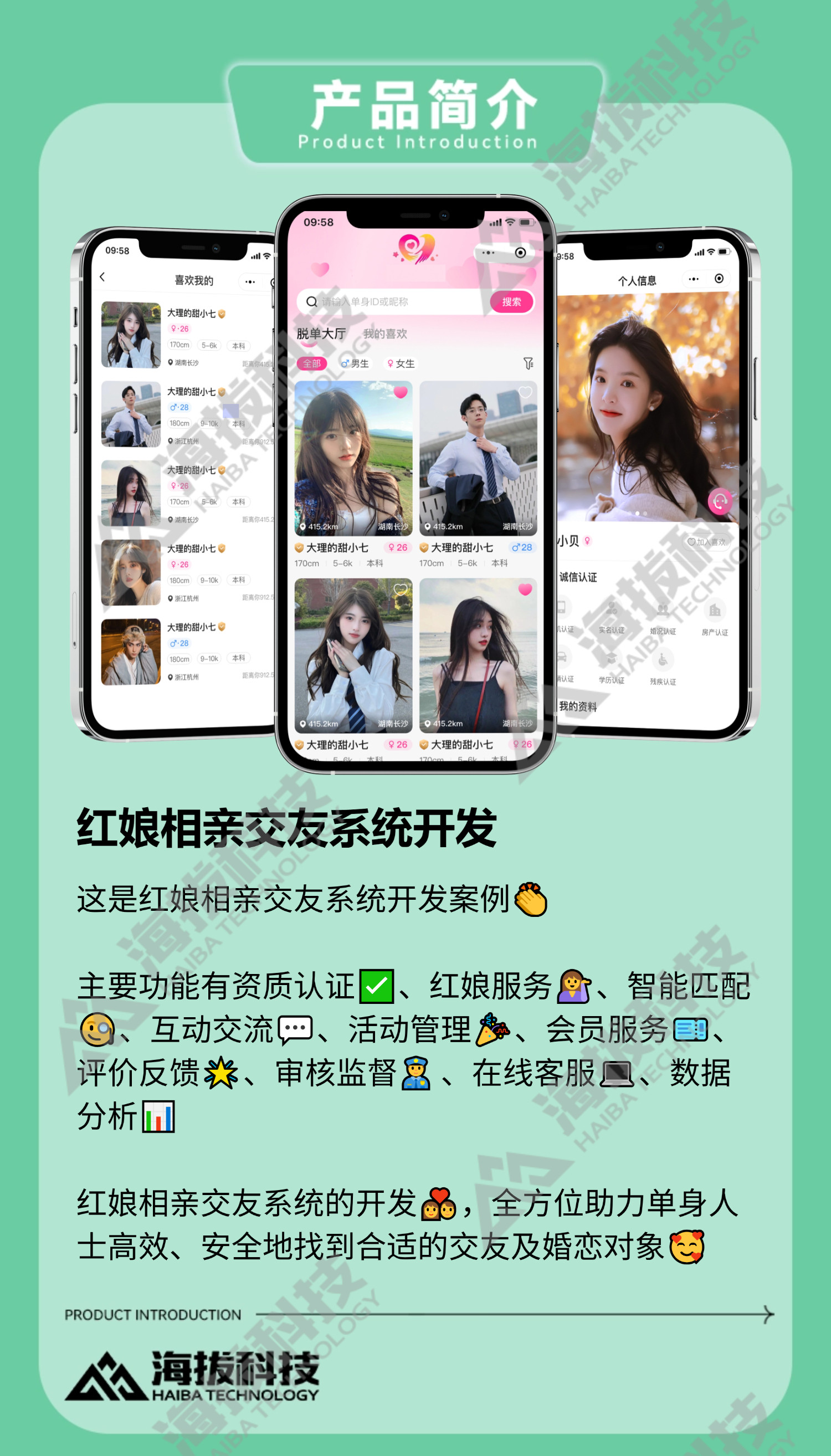 红娘婚恋相亲交友系统小程序app定制开发产品